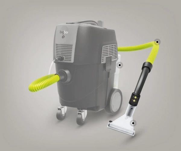O BigBoi SuckR Pro Extraction Pack é um kit extrator para o aspirador de pó BigBoi SuckR Pro. Ao adicionar o aspirador comercial de 5 metros e a mangueira do dispensador, você tem todas as ferramentas necessárias para limpar os estofos, assentos, tapetes e tapetes do carro.