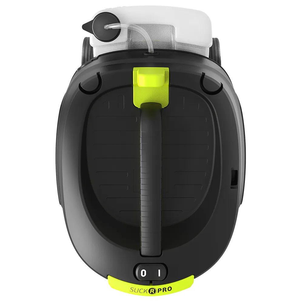 O tanque de extração de 4,5 litros está montado na parte de trás do SuckR Pro