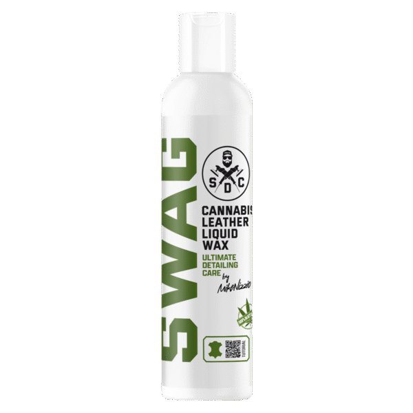 Swag CANNABIS LEATHER LIQUID WAX é uma cera natural profissional e exclusiva, criada para proteger de forma abrangente a estrutura e a superfície de estofos em pele. É a primeira cera no mundo cuja fórmula é baseada num extrato de Cannabis Sativa.